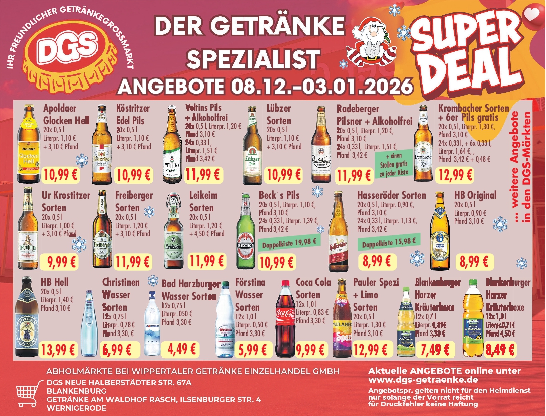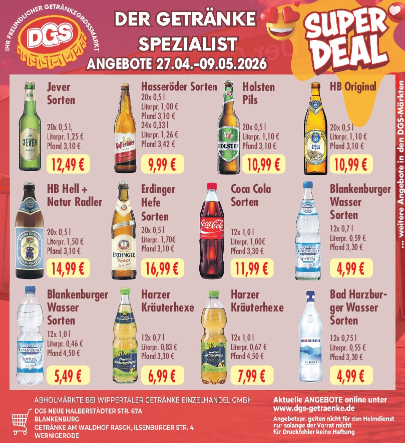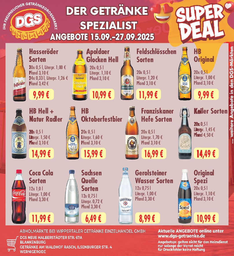 Getränke sind unsere Passion. Über 150 Sorten Biere sowie viele Säfte, Cola, Limo und Wasser halten wir für Sie bereit. Wir führen Biere zahlreicher Marken wie Warsteiner, Krombacher, Hasseröder, Brocken Bräu, Sternburger, Bitburger, Jever, Becks, Urkrostitzer, Freiberger, Lübzer, Landskron, Störtebecker, Dithmarscher, Altenauer, Alpirsbacher u.v.m.